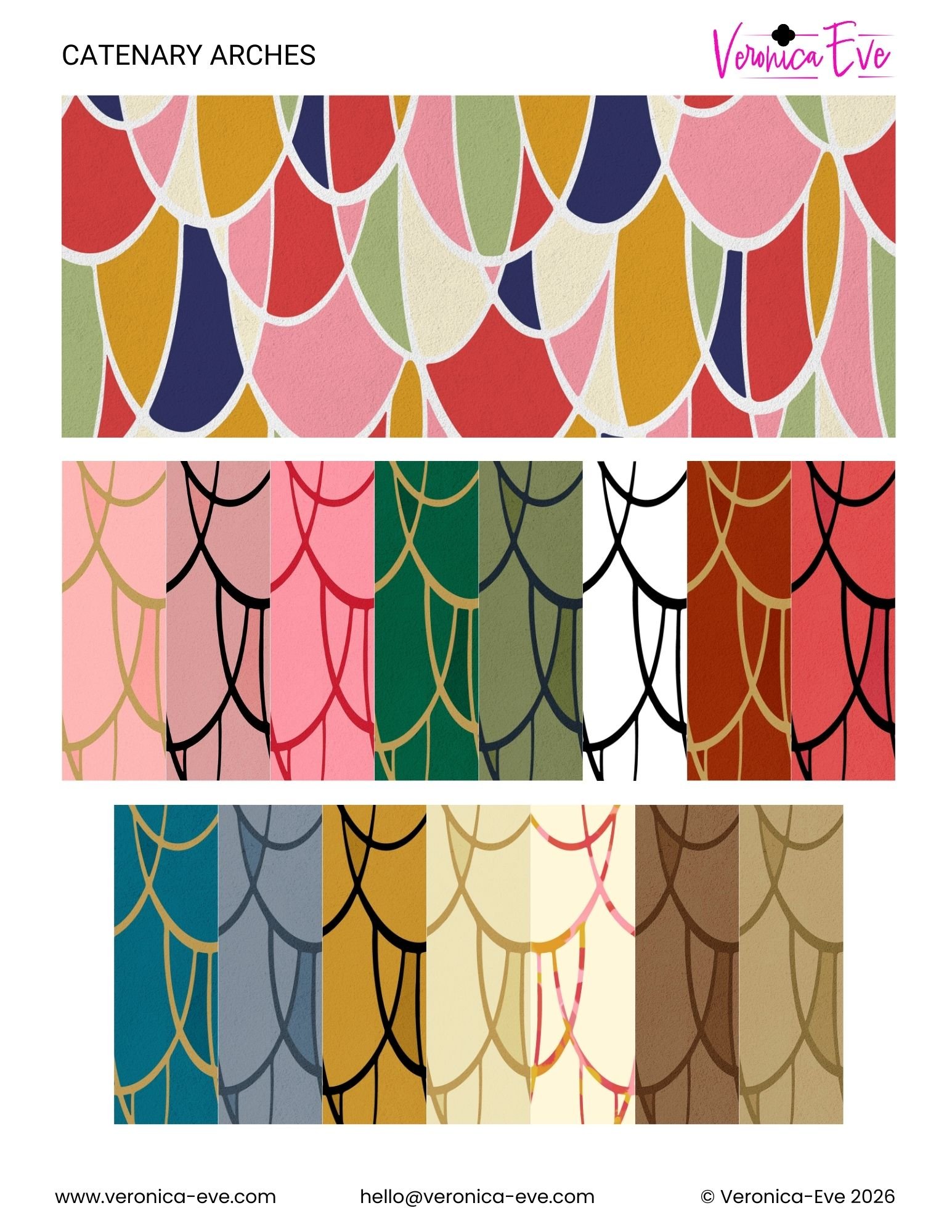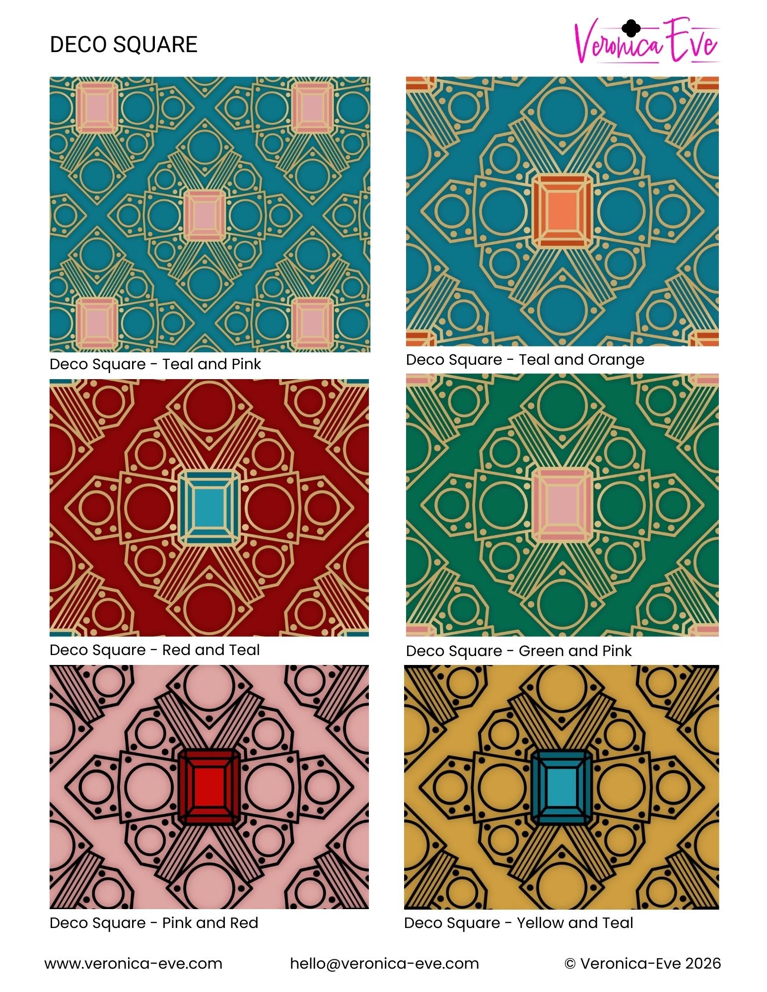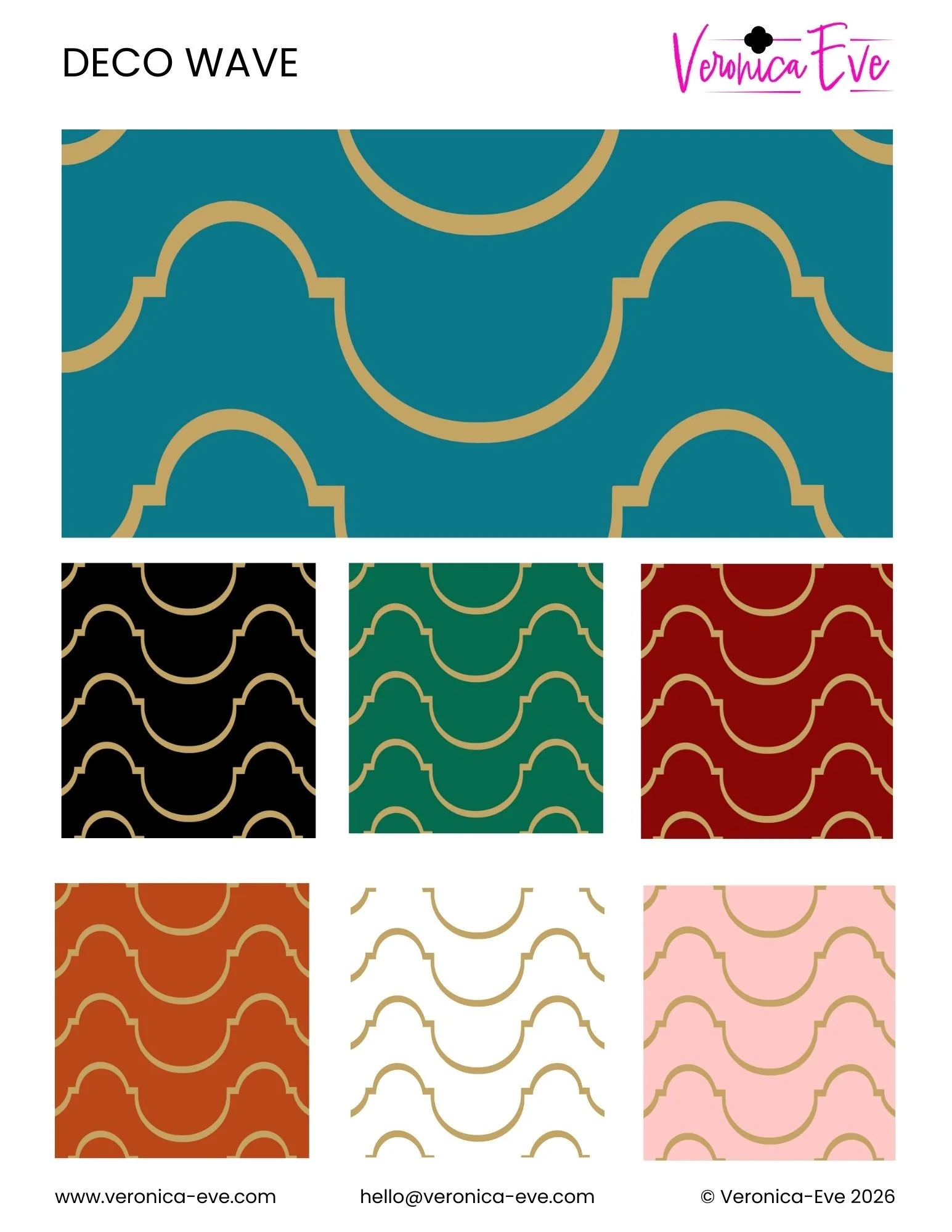 Inspired by vintage jewelry and early 20th century architecture, the Art Deco Collection by Veronica Eve is perfect for those who want to bring Hollywood Regency glamour or maximalism to their living spaces. This collection features six unique designs, available in a variety of colorways. Scroll down to explore the options!
